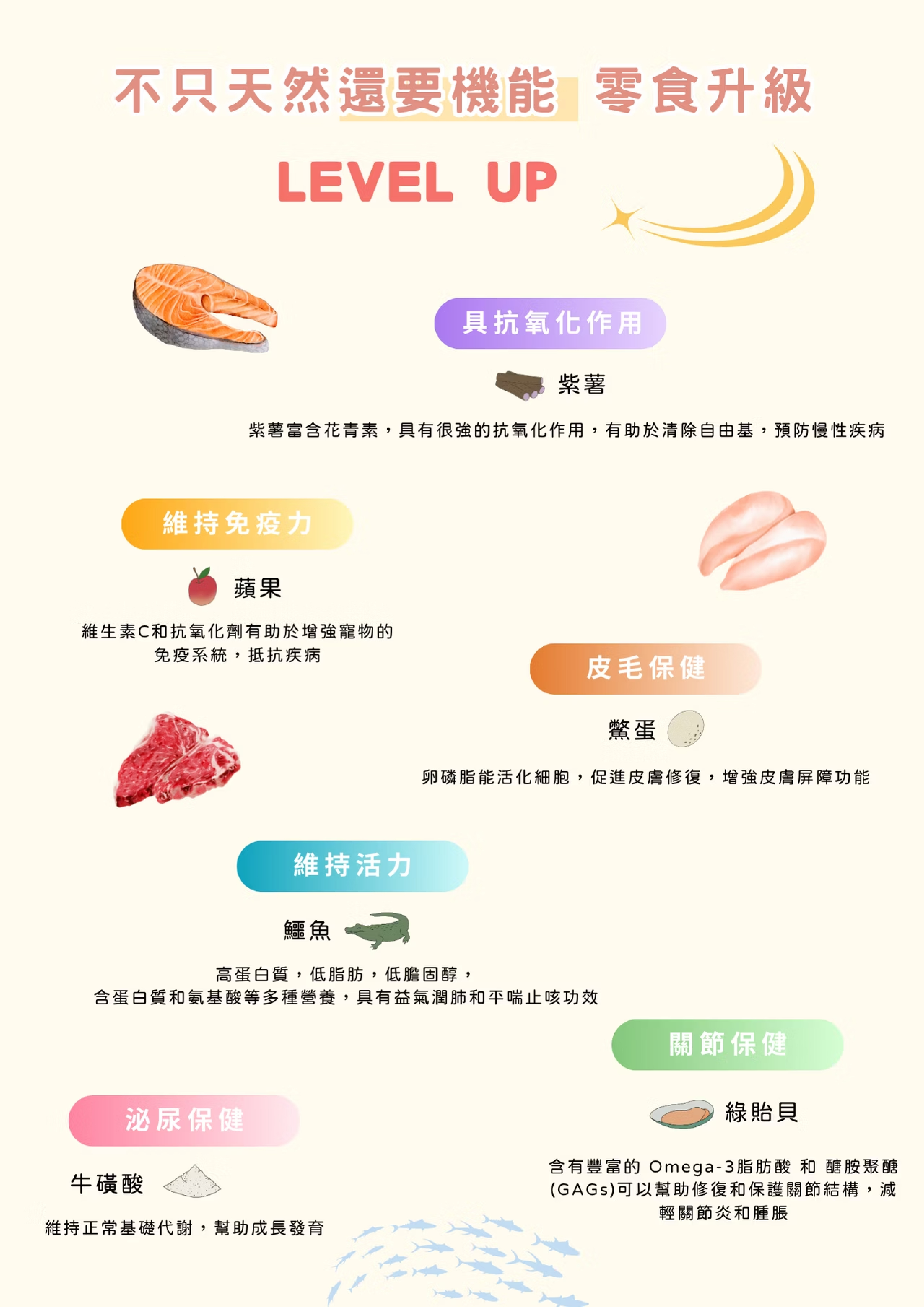 本產品不能代替主食,請依寵物年齡體重適量餵食。