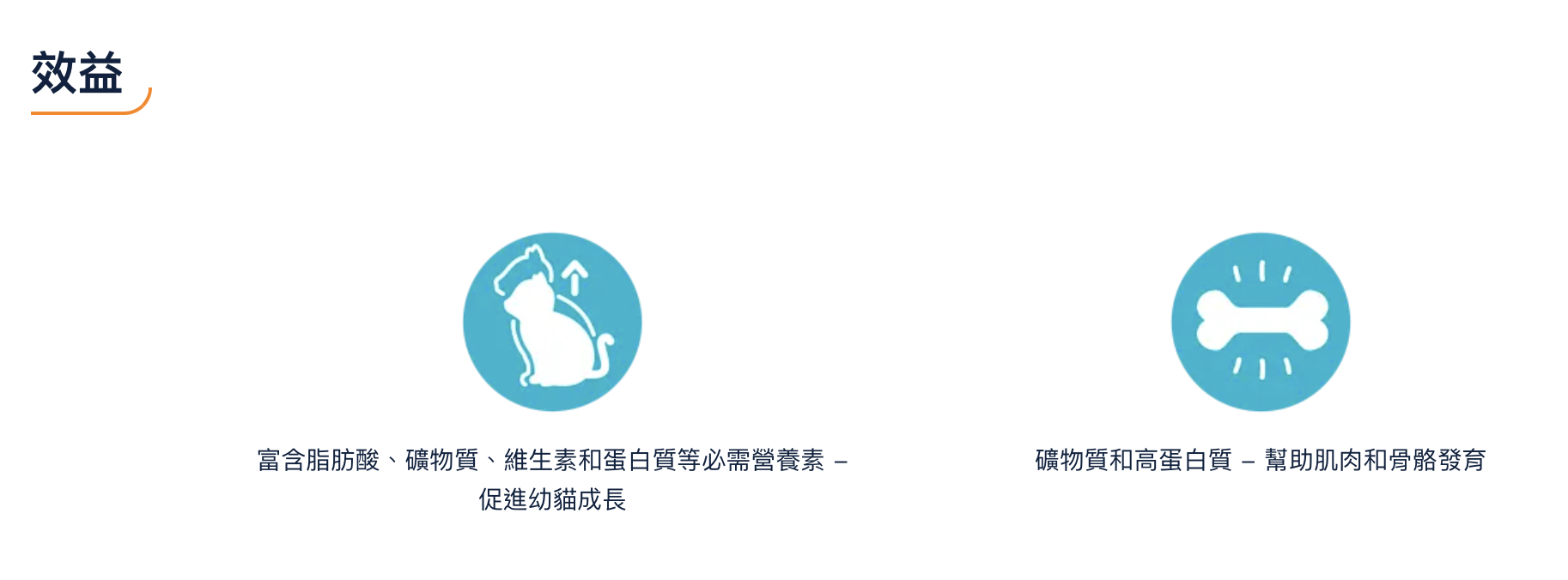 1. 促進幼貓成長:富含脂肪酸、礦物質、維生素和蛋白質等必需營養素