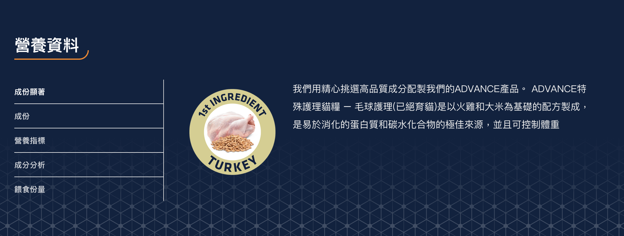 ADVANCE特殊護理貓糧 – 毛球護理(已絕育貓)是以火雞和大米為基礎的配方製成,是易於消化的蛋白質和碳水化合物的極佳來源,並且可控制體重