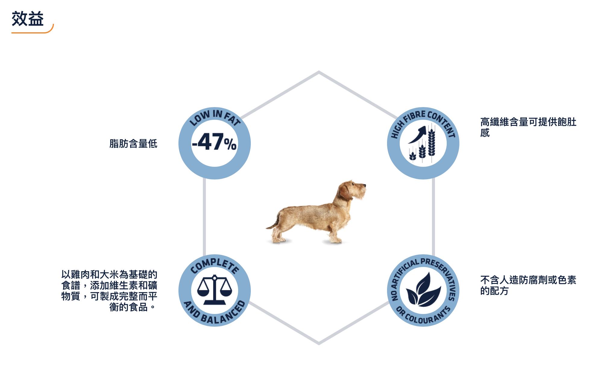新的低脂配方和高蛋白含量,可以幫助您的迷你犬控制體重而又不損失肌肉。