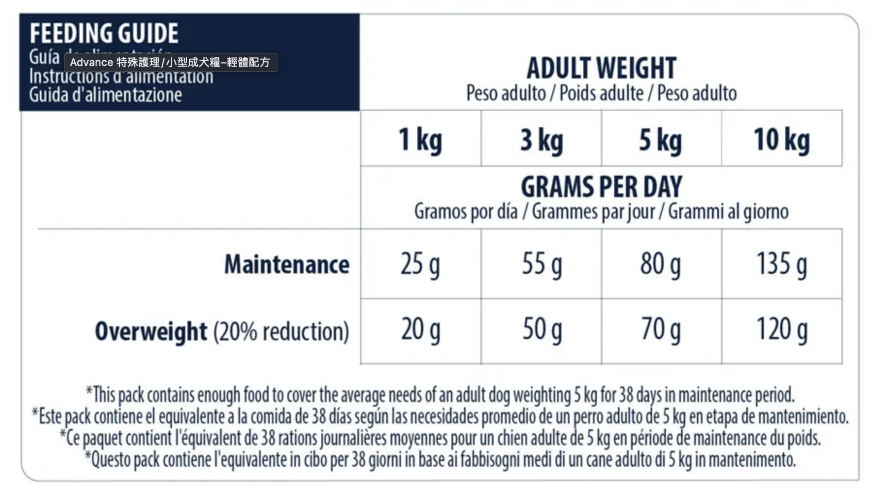 ADVANCE 特殊護理成犬糧 – 輕體配方,特別推薦用於超重且有肥胖風險的小型犬(不超過10kg)。