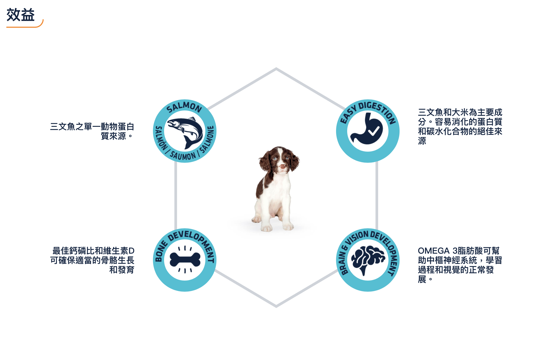 它的單蛋白配方由三文魚作為唯一的動物蛋白來源,再加上大米,使Advance Sensitive Puppy成為易於消化的產品,非常適合腸胃敏感的幼犬。