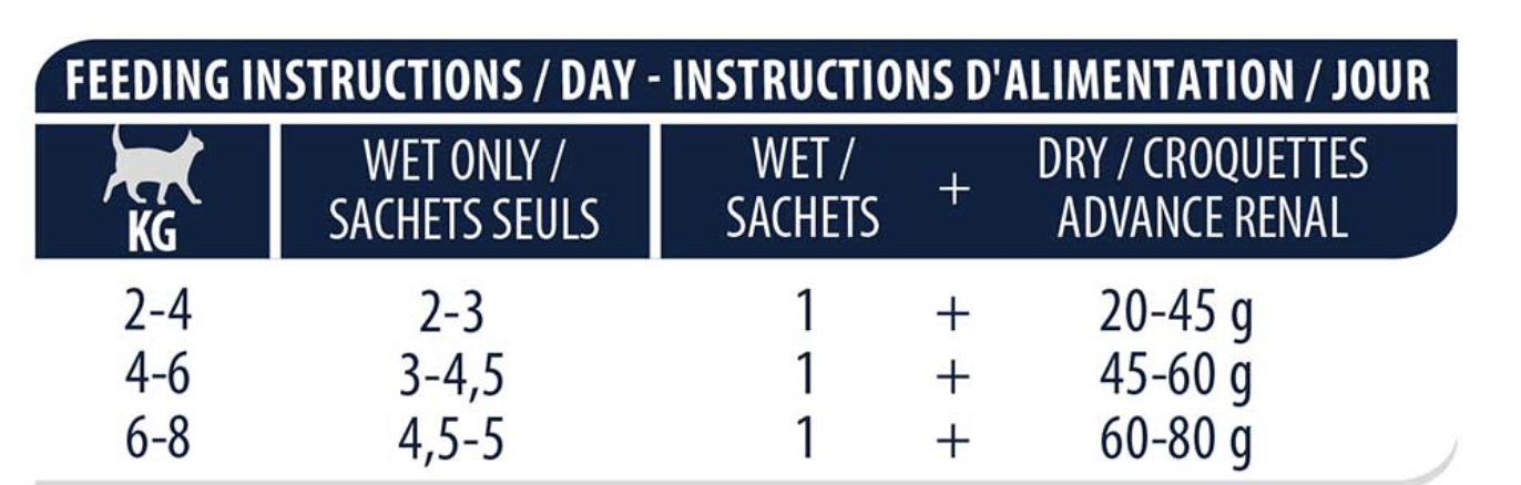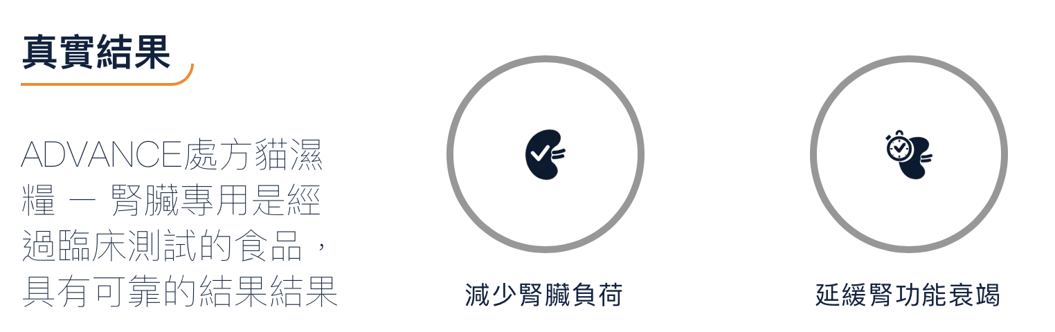 ADVANCE處方貓糧 – 腎臟專用是成年貓的完整飲食產品,其配方含極高質且有限的蛋白質、低磷,有為慢性及急性腎臟疾病的情況下支持貓的腎臟系統功能。