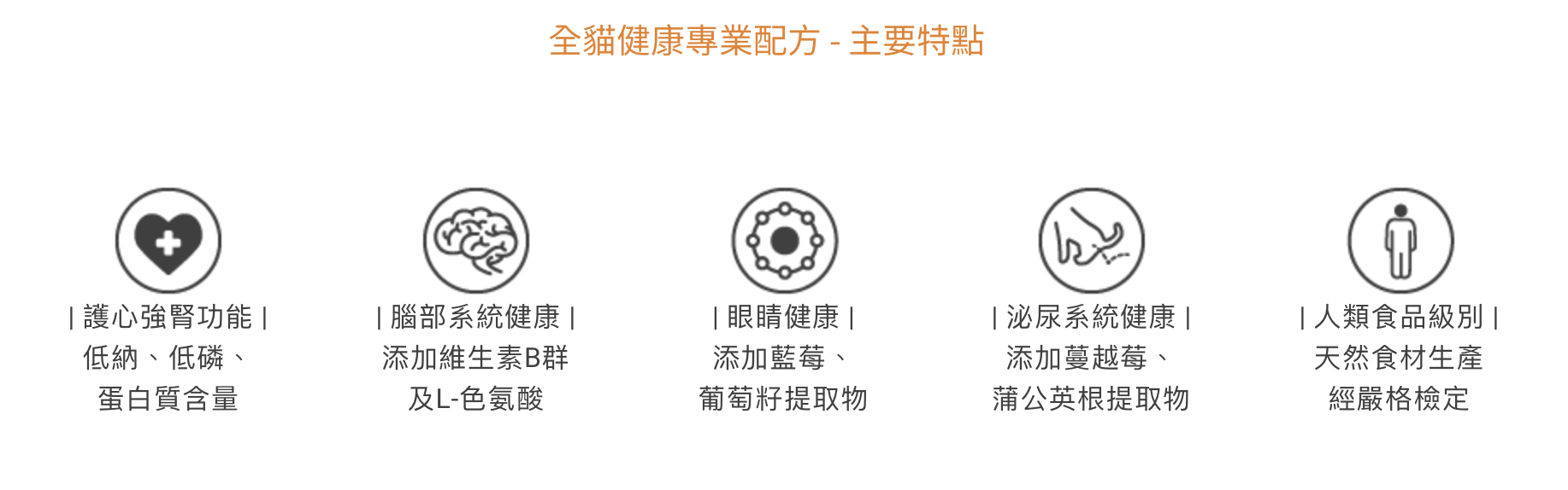 提供經過嚴格控制份量的蛋白質,並採納低納低磷配方,以減輕年長貓心臟和腎臟的負擔。
