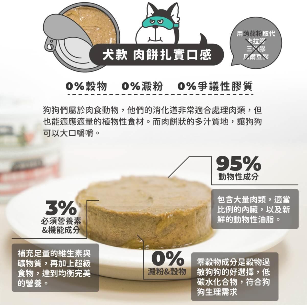 ✔ 零澱粉、零穀物、無爭議性膠類,毛孩安心食用