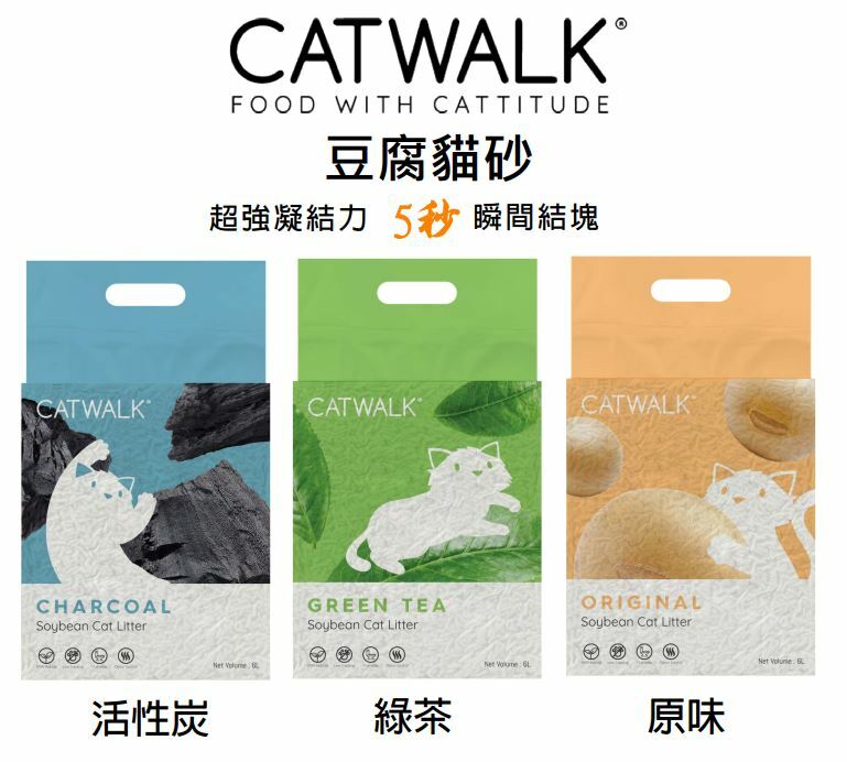Catwalk 豆腐貓砂遇水瞬間凝固,容易清理。