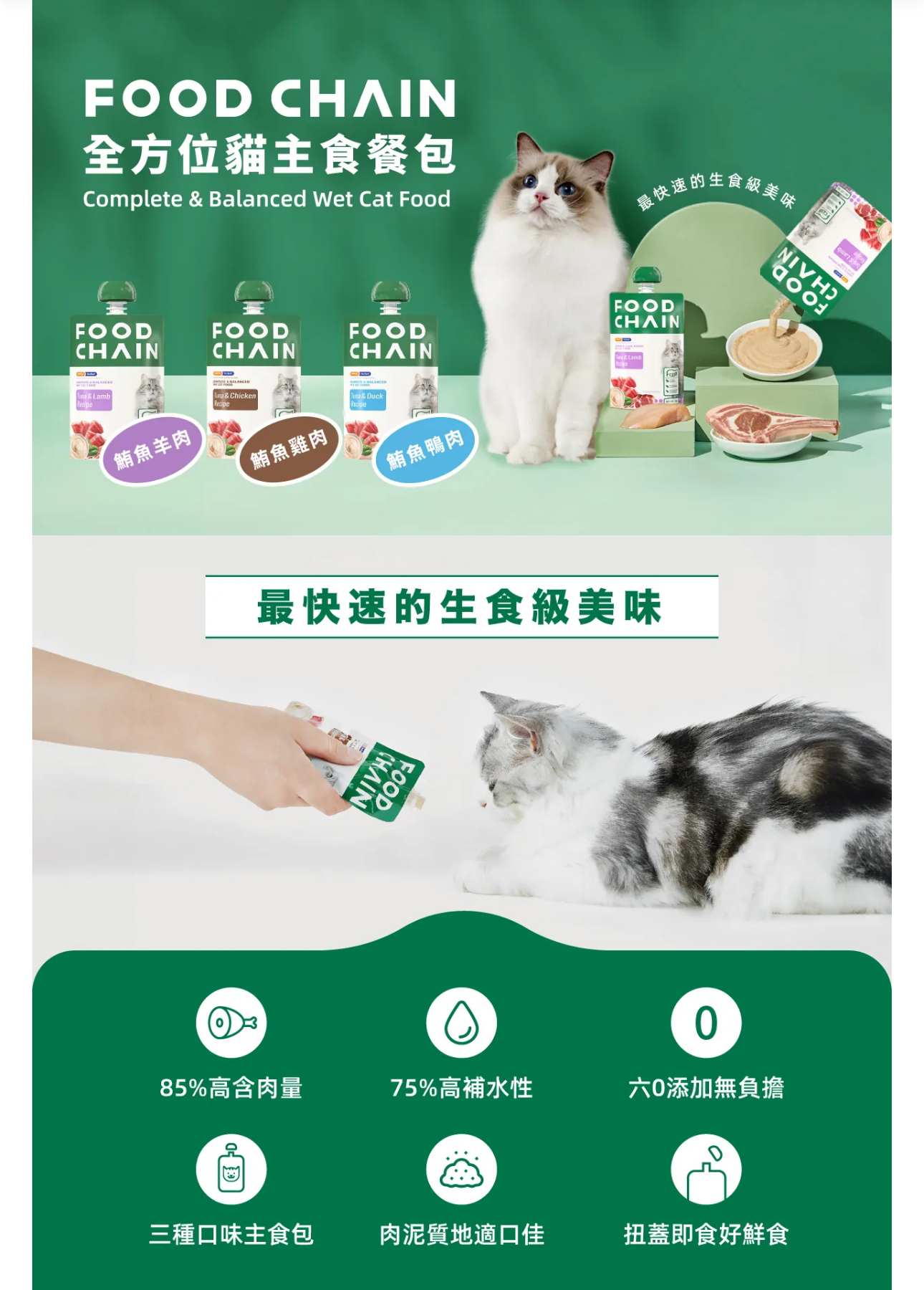 Food Chain|全營養貓用生骨肉主食醬包 80g (成貓主食醬包)(16包1盒)