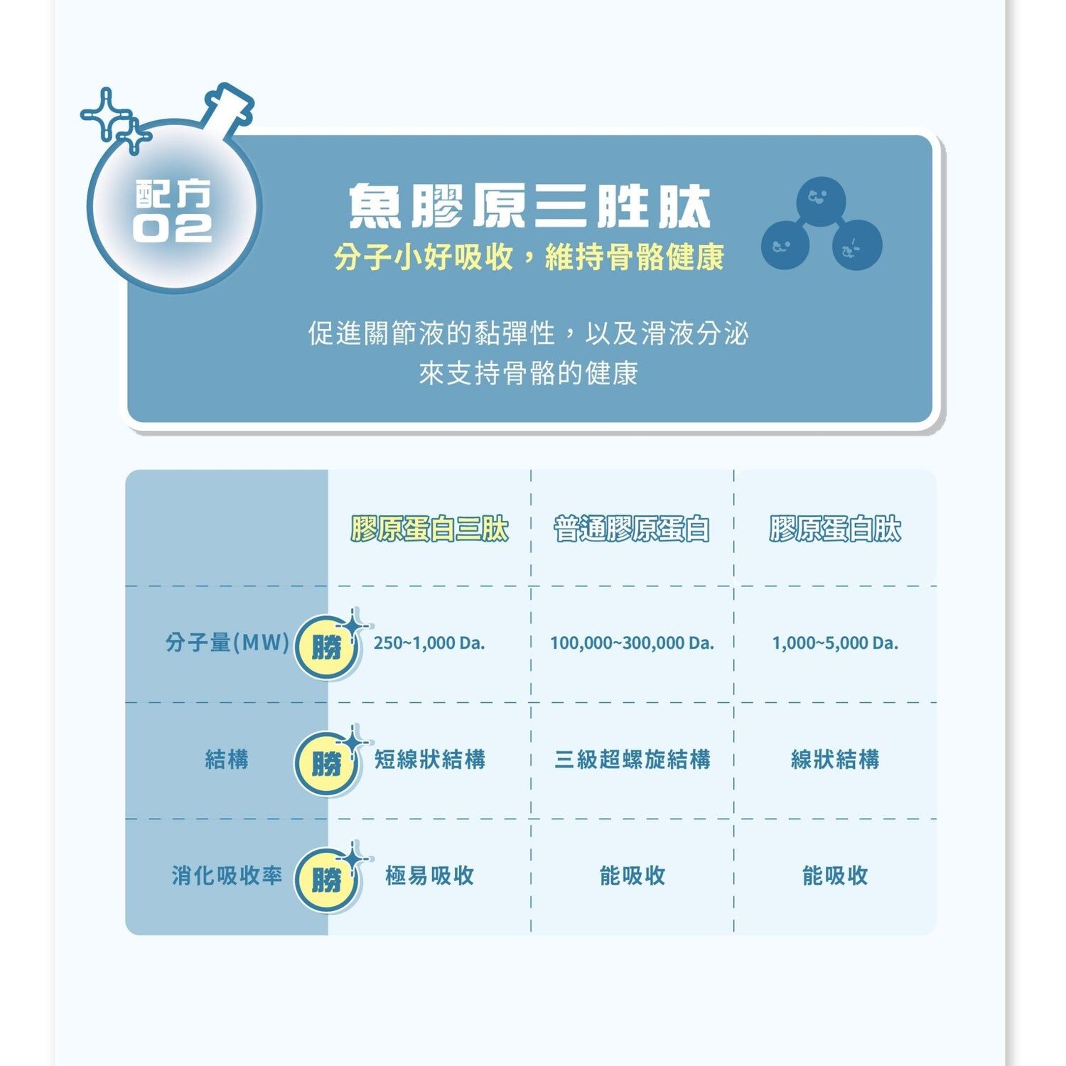 魚膠原三胜肽:幫助潤滑分泌,保護關節靈活