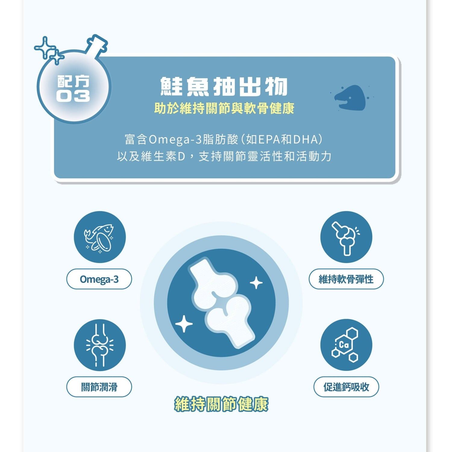 鮭魚抽出物:保持軟骨彈性,幫助肌肉穩定性