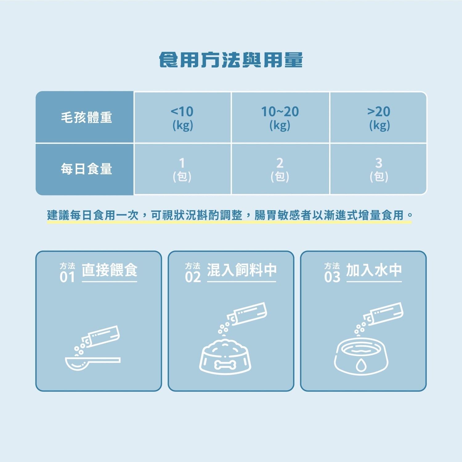建議觀察毛孩的狀況,因為每個毛孩的體質、習慣不同,見效的時間也不一,