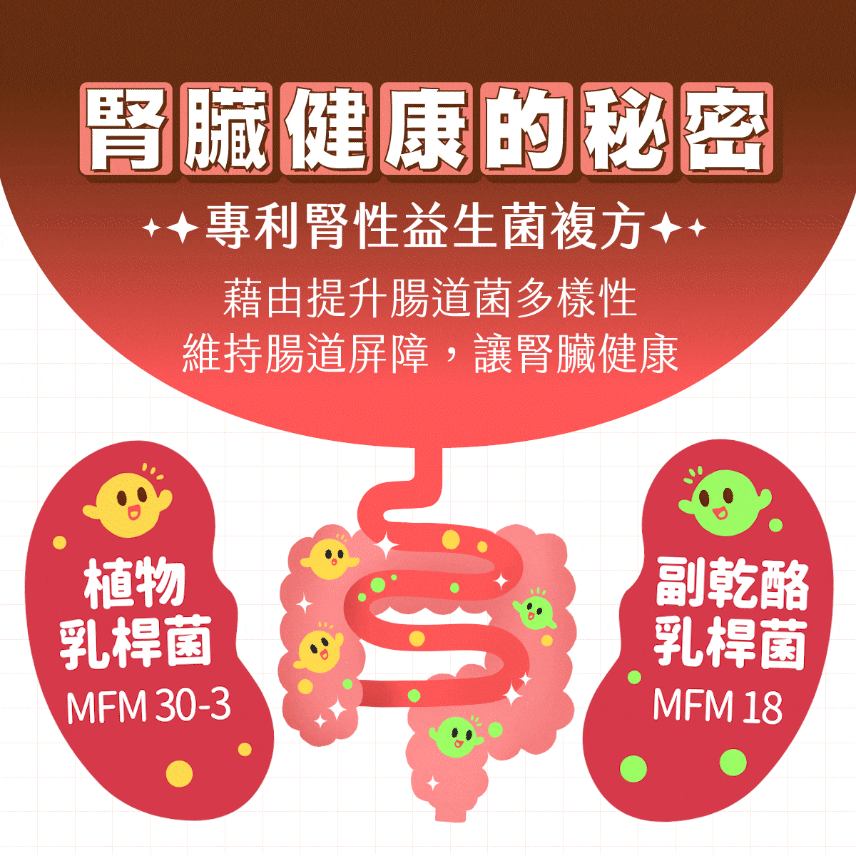 ✓專利腎性益生菌:平衡腸道菌叢,維持腎臟健康