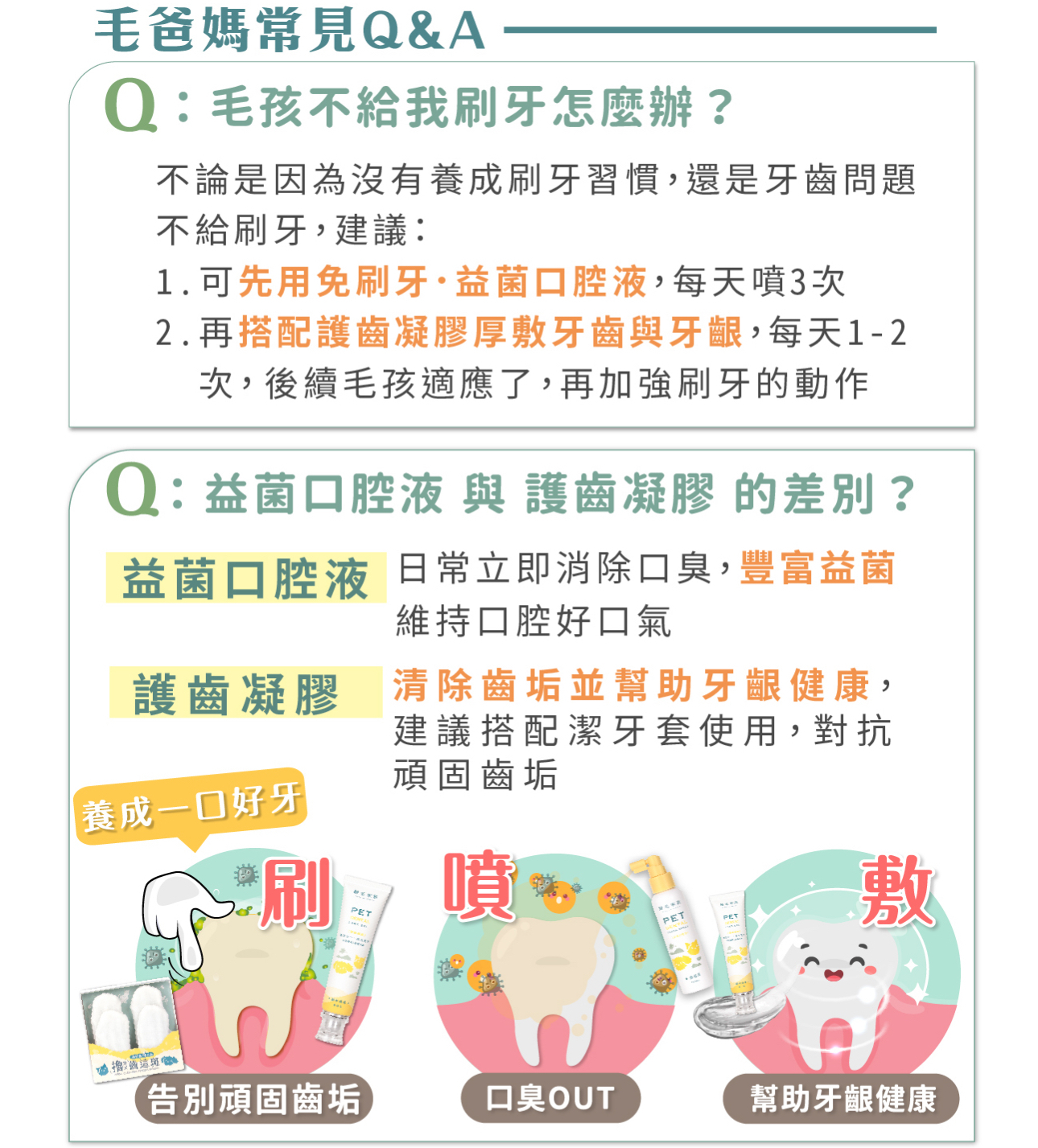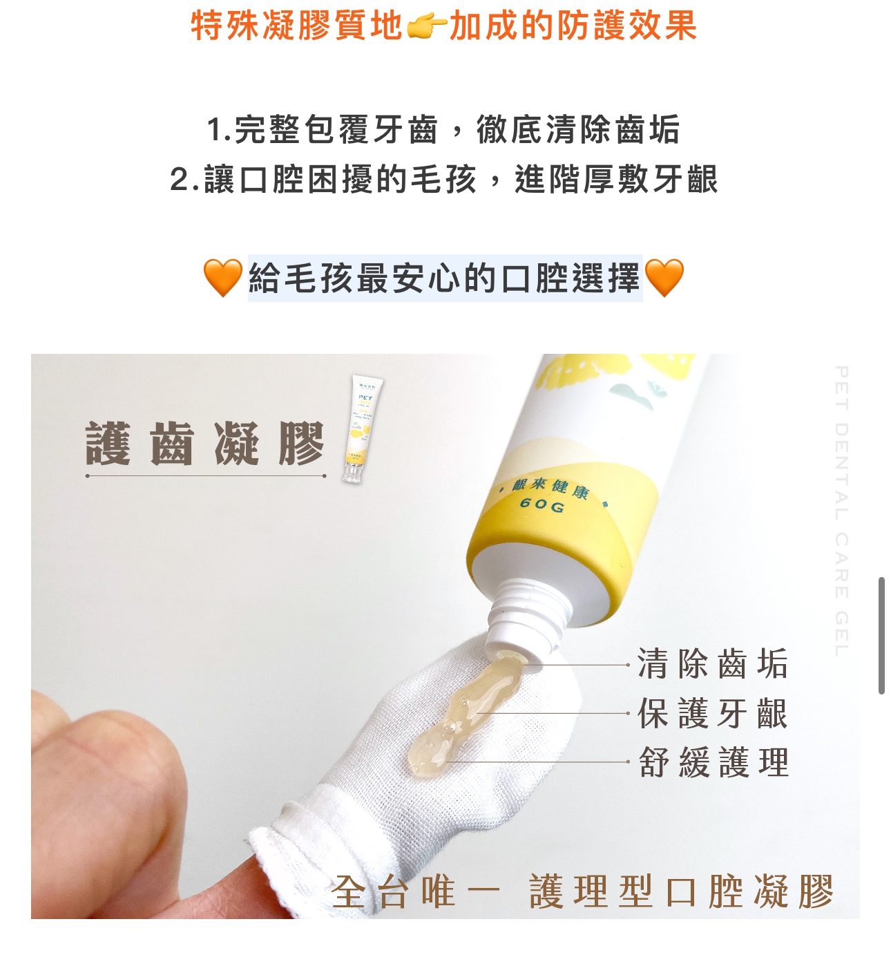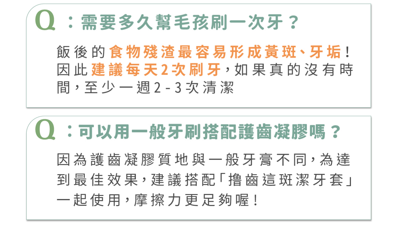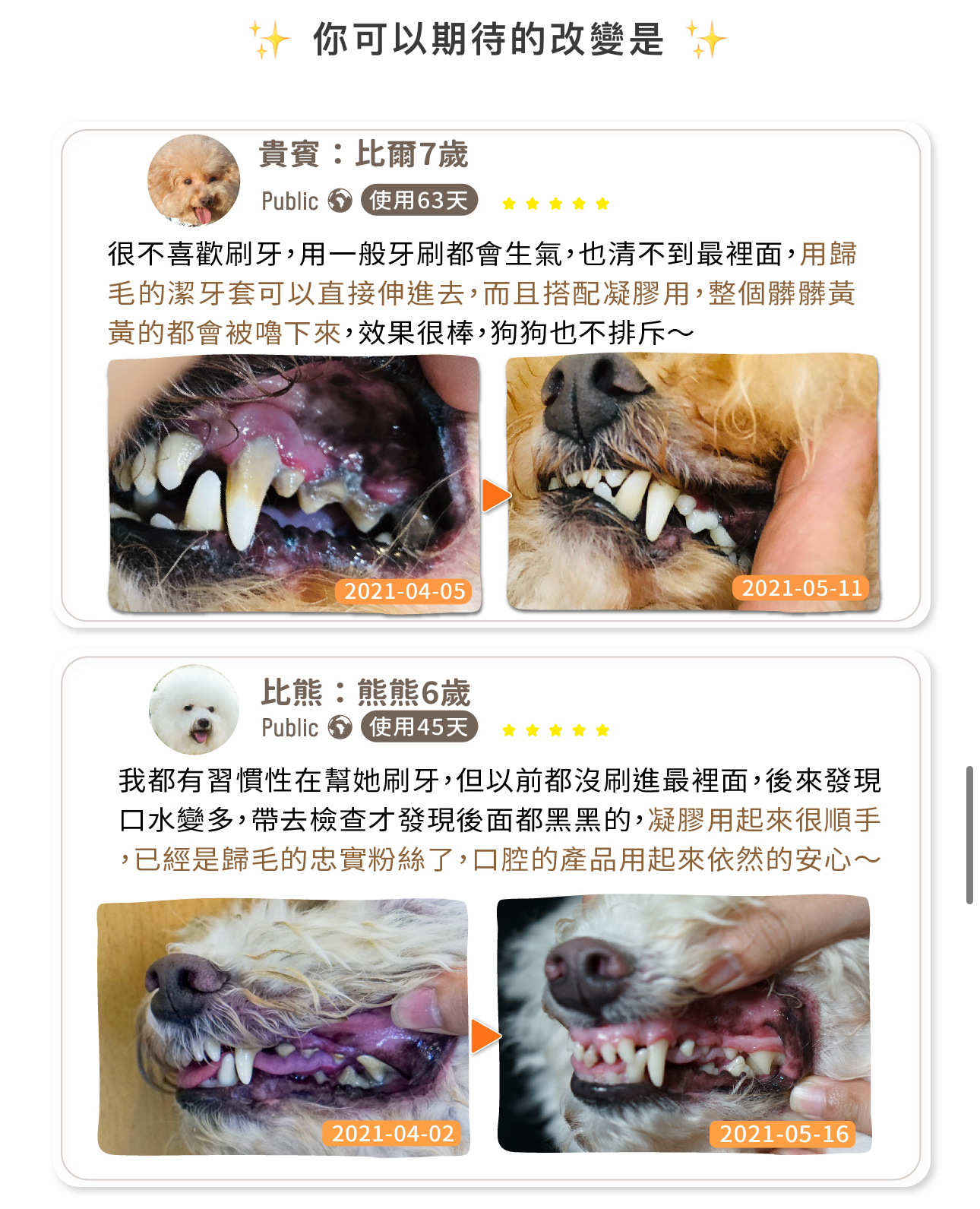 1.第一遍塗抹上後,搭配【歸毛家族-撸此這斑潔牙套】清潔毛孩口腔。