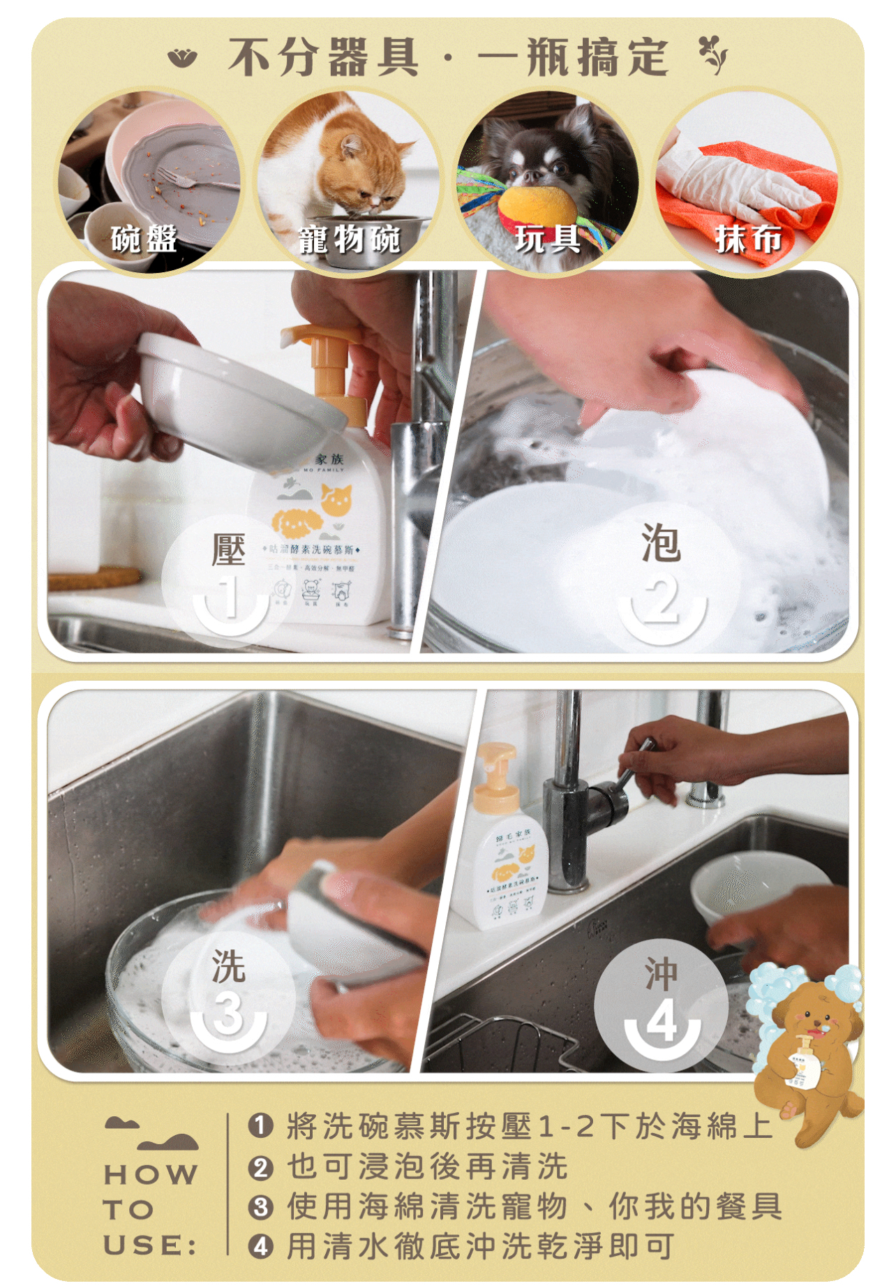 ✓ 輕鬆去除油汙、根本除掉口水味