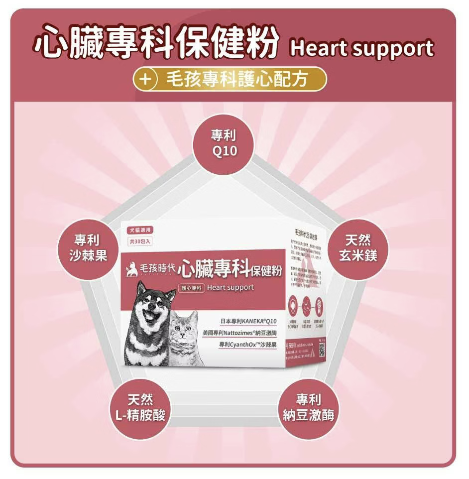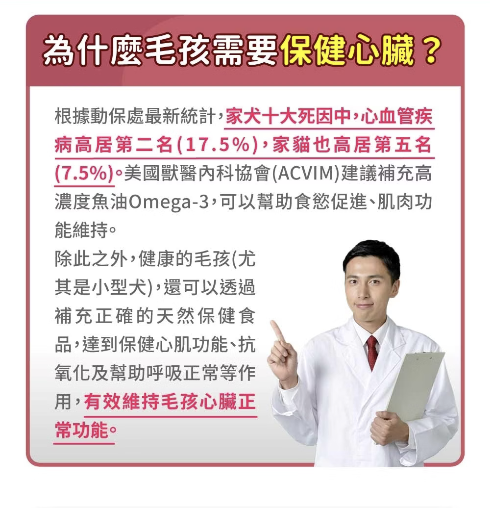 配方含有 5 大元素,幫助維持狗狗心肺健康 :