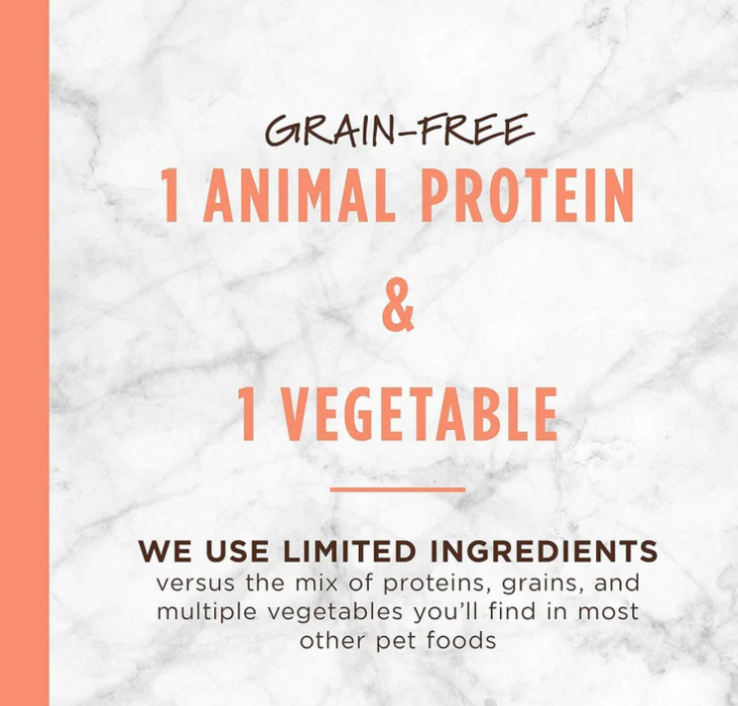 • 專門為對食物敏感的寵物提供簡單的成分:一種動物性蛋白質和一種蔬菜。