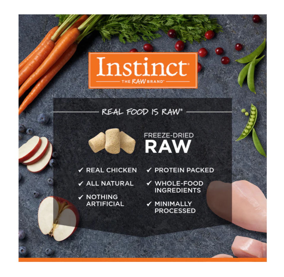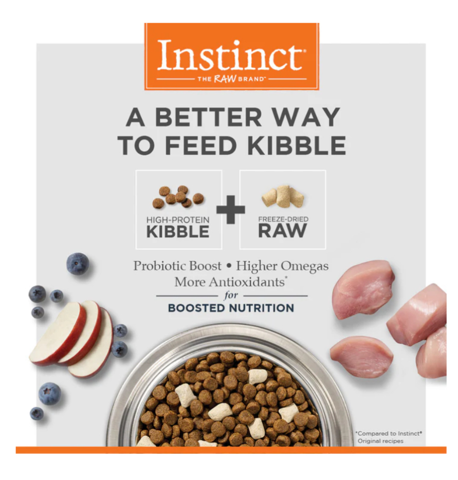 Instinct® Raw Boost® 是一種更好的飼料方式 - 將無穀物,高蛋白粗磨和冷凍乾燥的原料裝在一個袋子裡。每道食譜都以真正的肉類