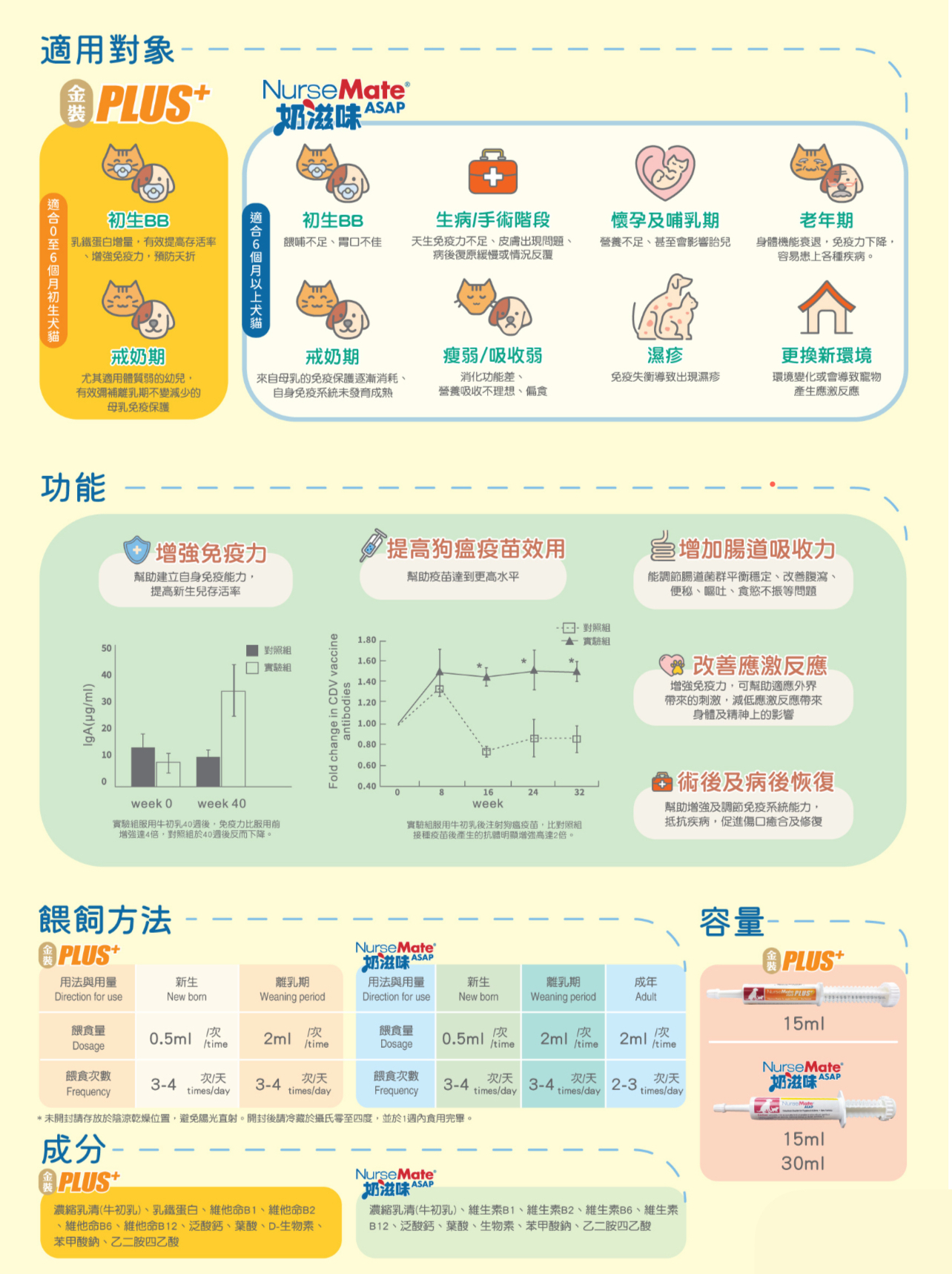 濃縮乳清(牛初乳),、甲基纖維素、苯甲酸鈉、乙二胺四乙酸、維他命B7、維他命B12、葉酸