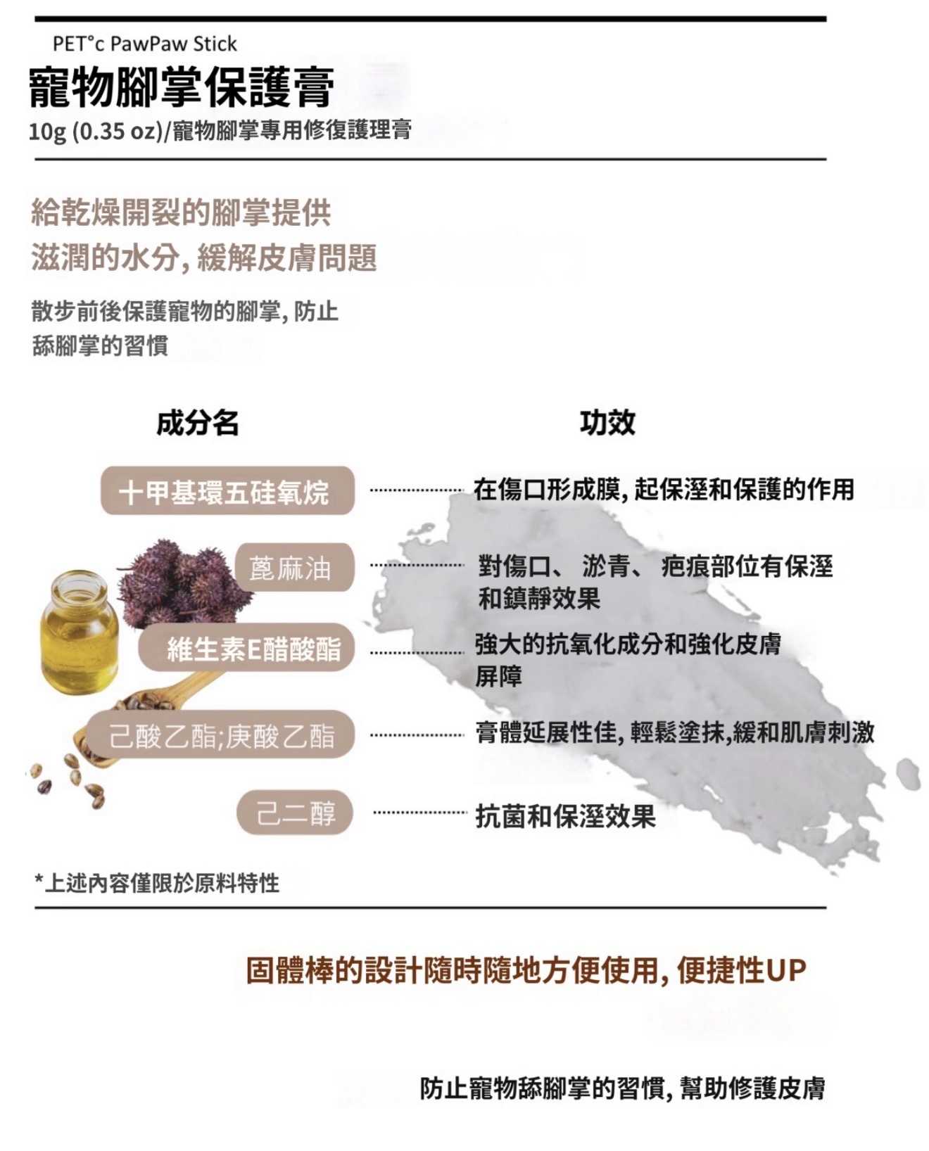 塗抹後會於皮膚上形成滋潤薄膜保護受損皮膚