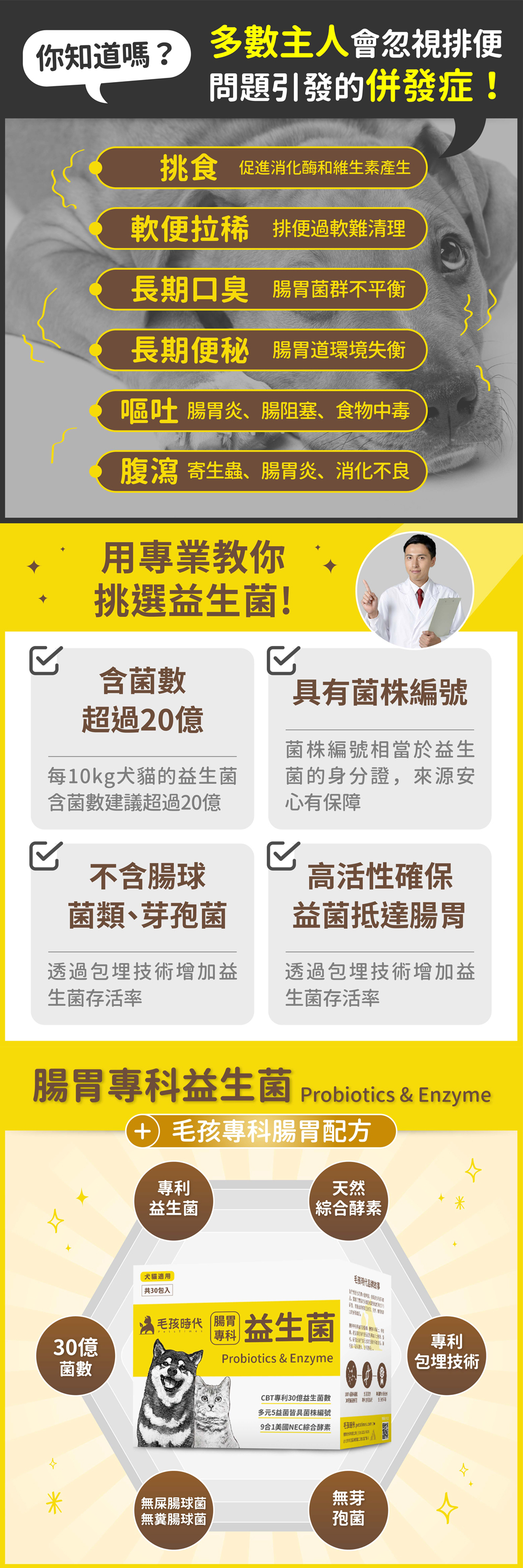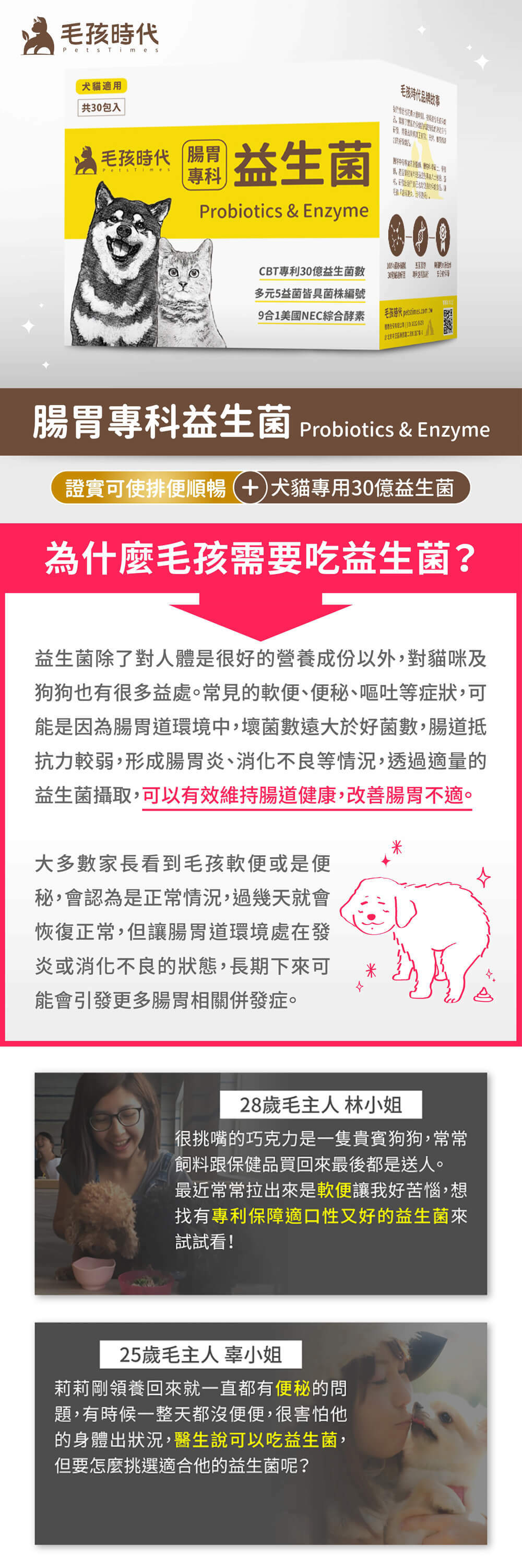 1、毛孩時代的「腸胃專科益生菌」有哪些成分特色呢?