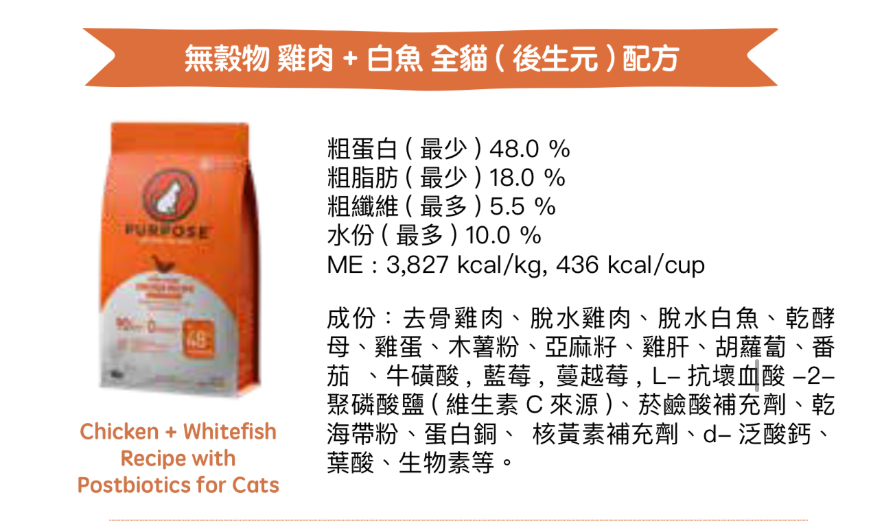 Purpose 普斯貓 無穀物全貓糧 -後生元配方 走地雞肉 4.5lb