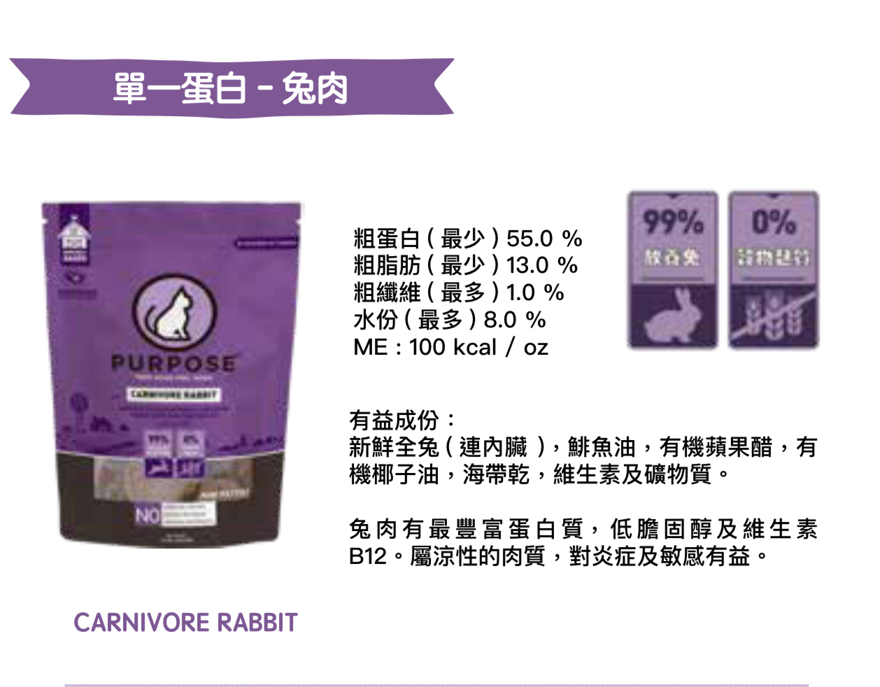 Purpose | 純兔肉|單蛋白配方凍乾貓糧(肉餅) - 12oz