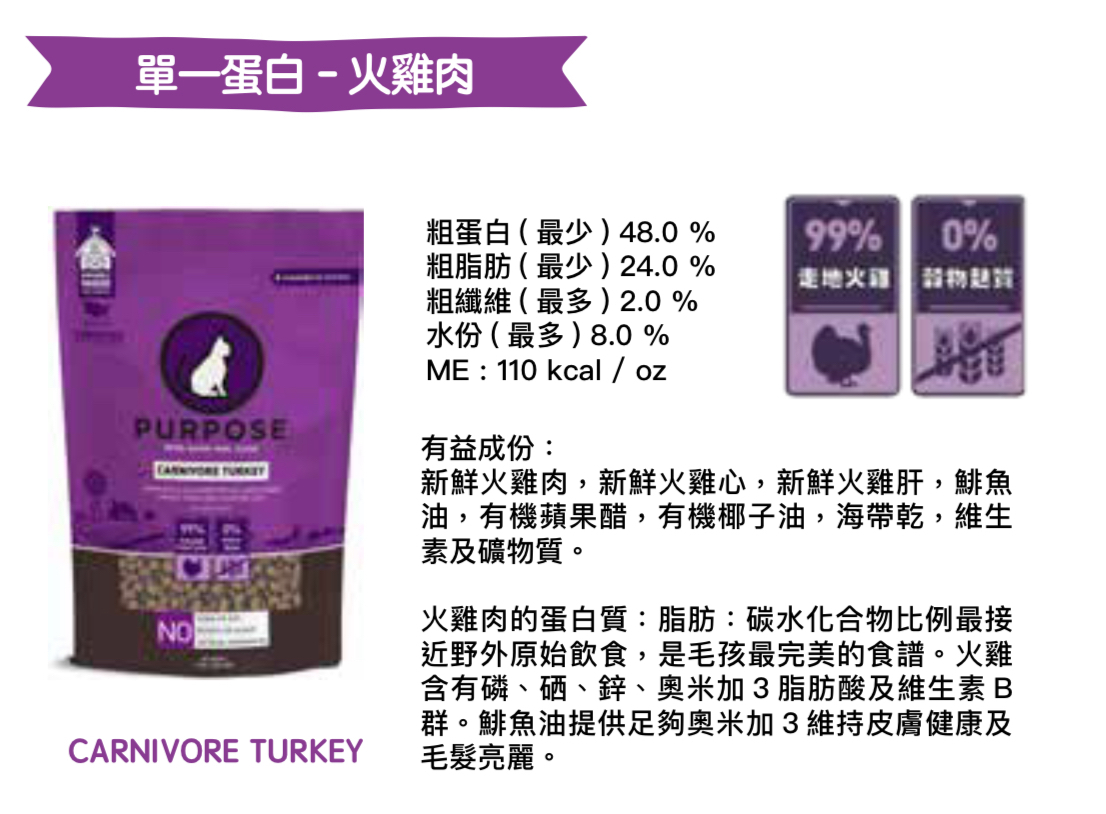 Purpose 凍乾貓糧一直致力於滿足您貓的營養需求。 |