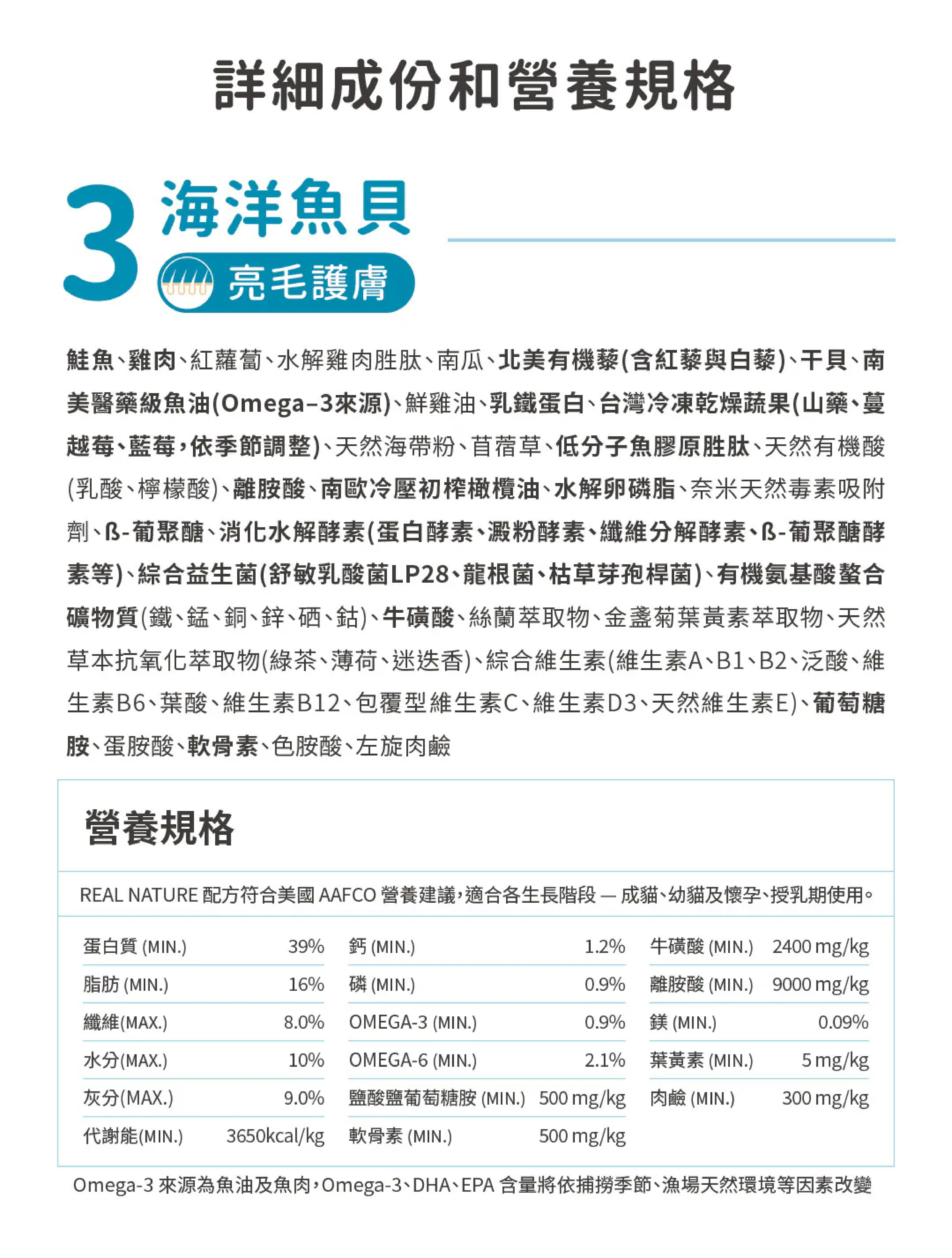 ▹ 本配方營養標示項目符合美國AAFCO營養建議,提供成幼貓維持每日所需之營養標準。