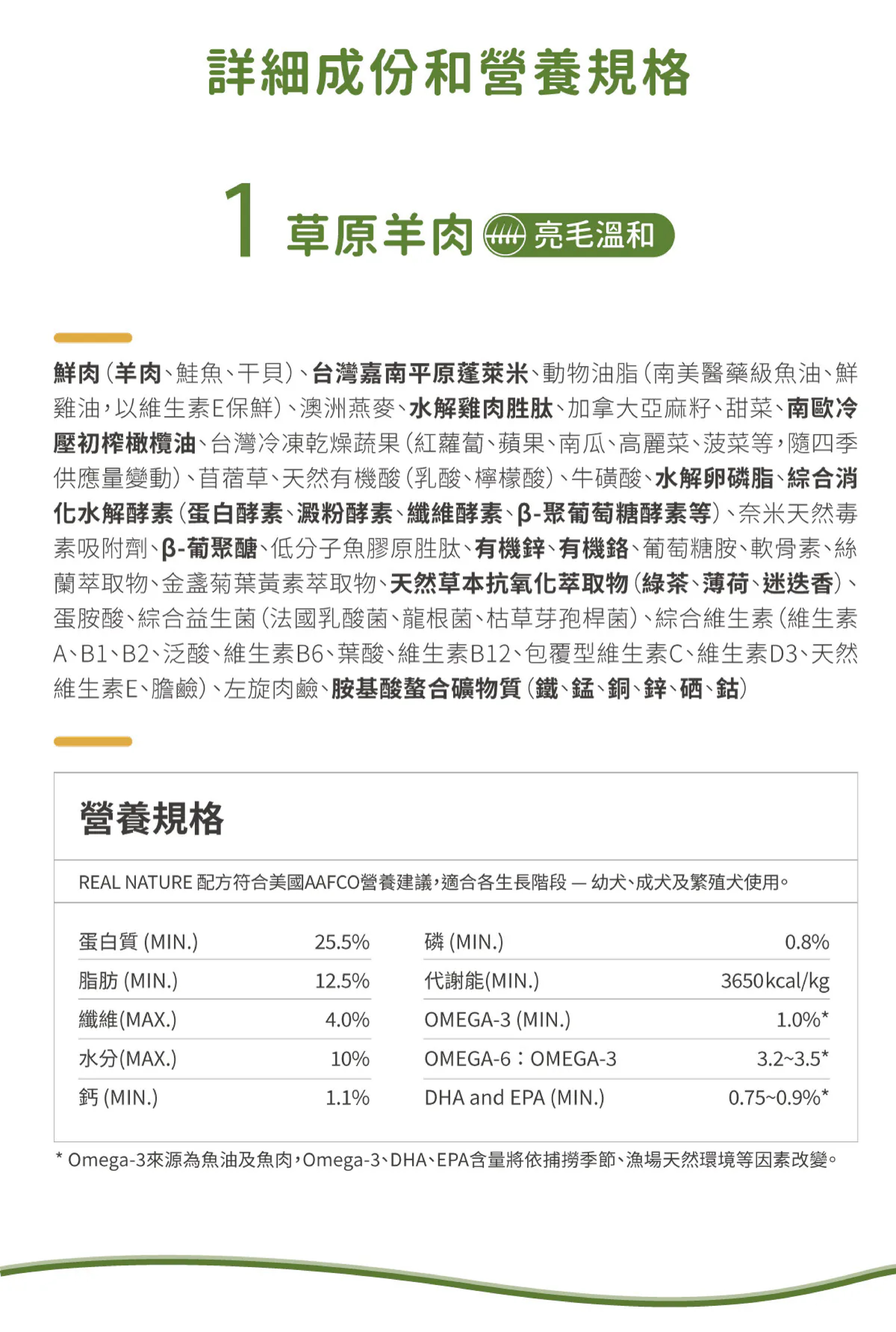 ▹ 本產品營養標示項目符合美國AAFCO營養建議,提供成幼犬維持每日所需之營養標準