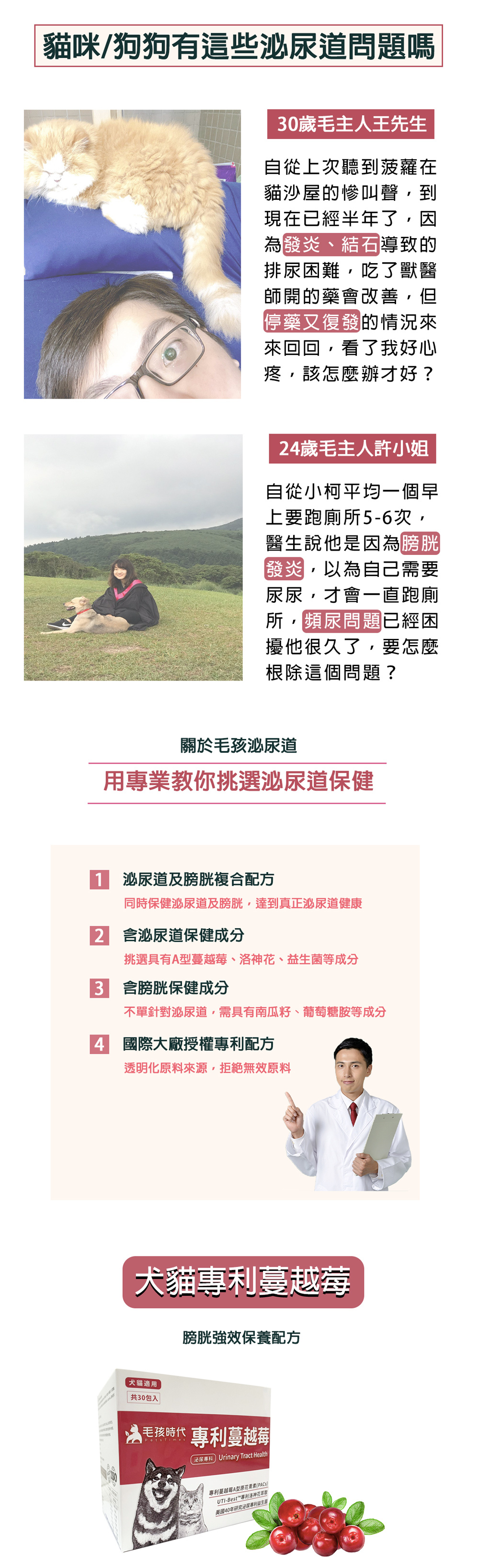 1、毛孩時代的「專利泌尿道保健粉」主成分有哪些呢?