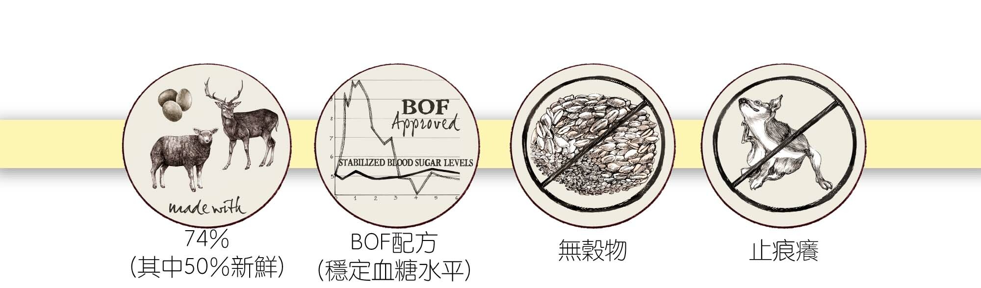 BOF(Behavioural Optimised Food)優化行徑食品是按照最貼近天然食譜而研發的配方,從而符合你愛犬(貓)營養所需的一種食品制作原則。這一點我們已經實現了!我們的食物確保狗血糖水平的穩定性。它的新鮮肉類含量高,可激發狗狗的本能。還有,低溫的烘焙技術意味著你的狗狗可獲得最好的營養價值。至於,漿果,種子和草藥則模仿在大自然中捕獲的獵物的胃內容及易膳寵食每粒大小的一致性,可確保食品在狗狗吞嚥前有被適當地咀嚼。