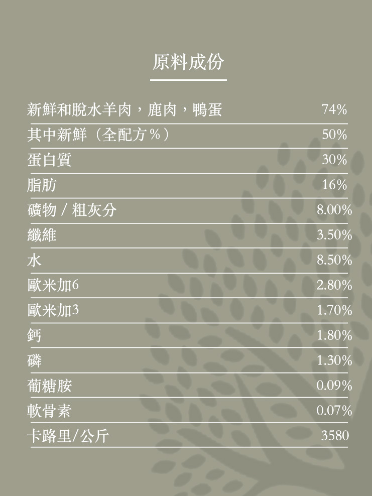★ 內含74%的鮮、放養威爾斯羊、蘇格蘭紅鹿
