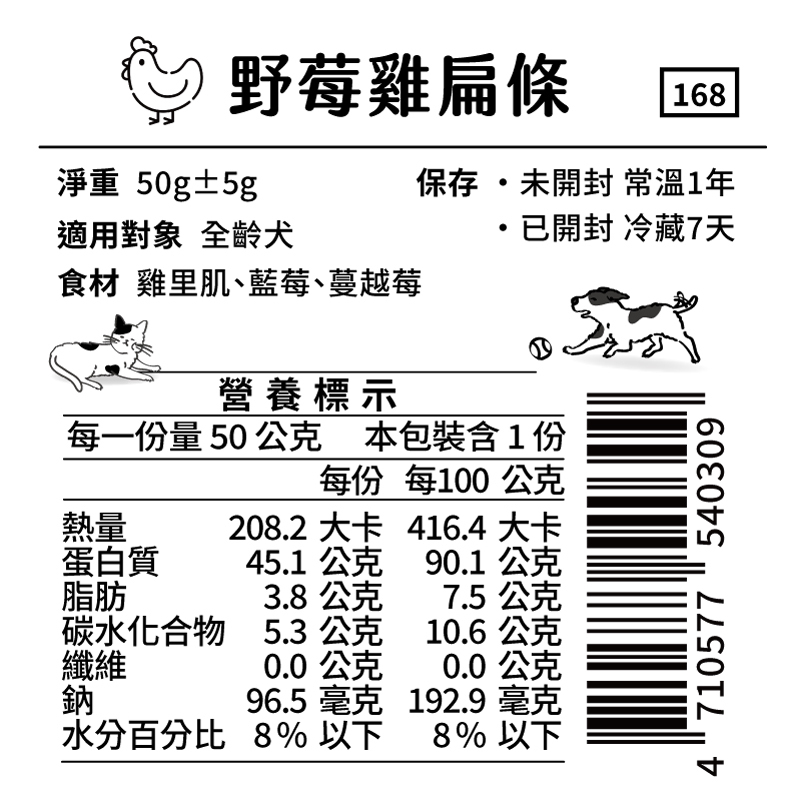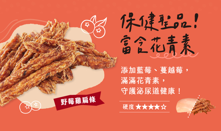 • 汪事如意 原肉零食|野莓雞扁條 硬度★★★★☆