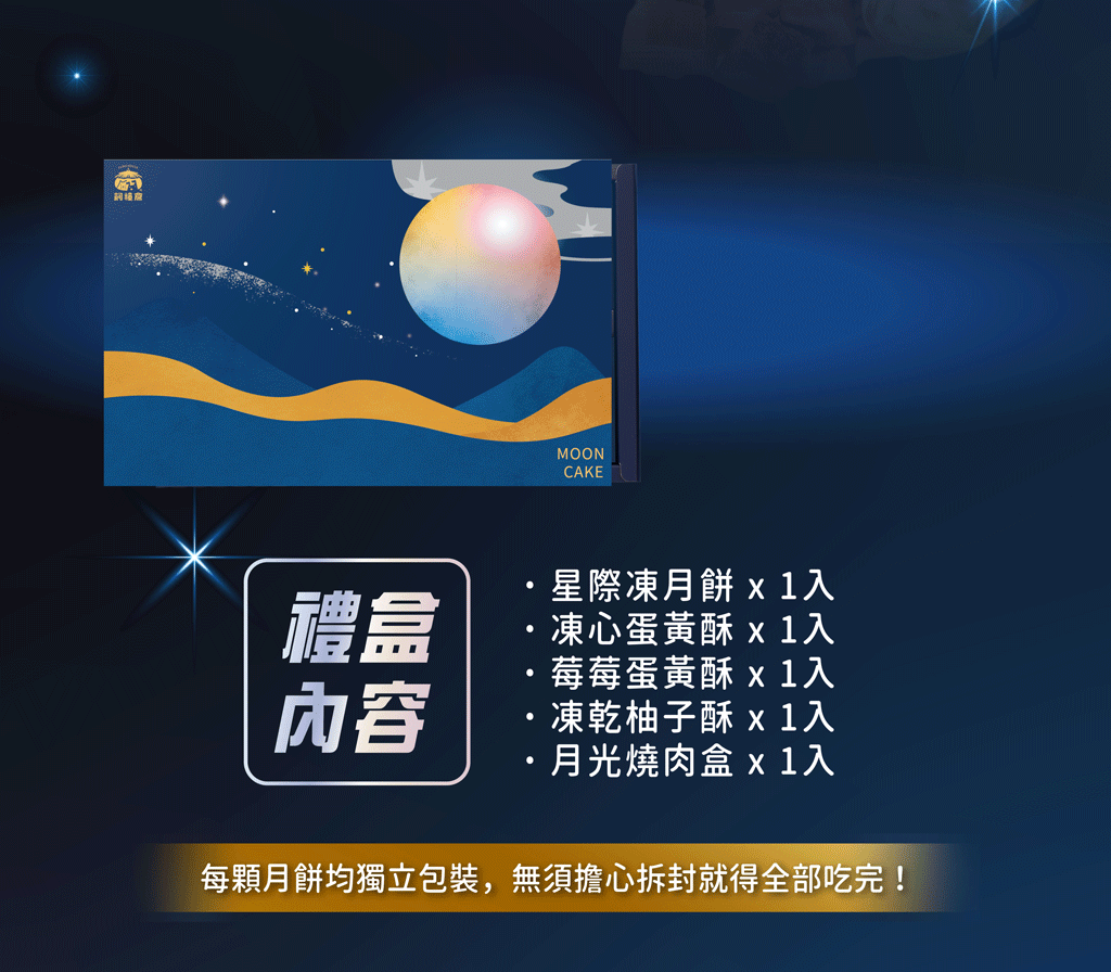 - 月光燒肉盒 x 1入:雞肉 X 白帶魚 X 牛肉 X 蝦仁