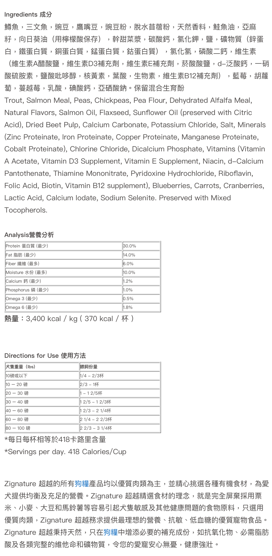 Zignature超越 全犬種無穀物 鱒魚及三文魚配方