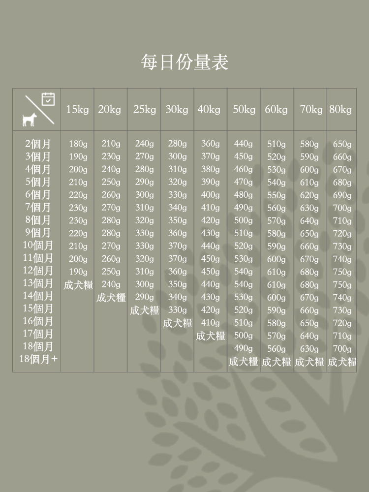 【提示】先比平時少10%的的份量來喂飼,然後再逐步調整。歡迎您隨時與我們聯繫,尋求建議和指導。